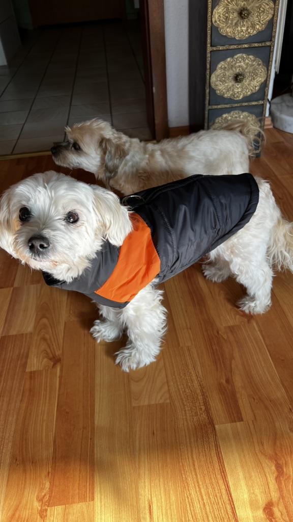 Jakken sitter godt. Mykt og varmt fôr og vanntett. Har allerede bestilt til alle 3 hundene i forskjellige størrelser.