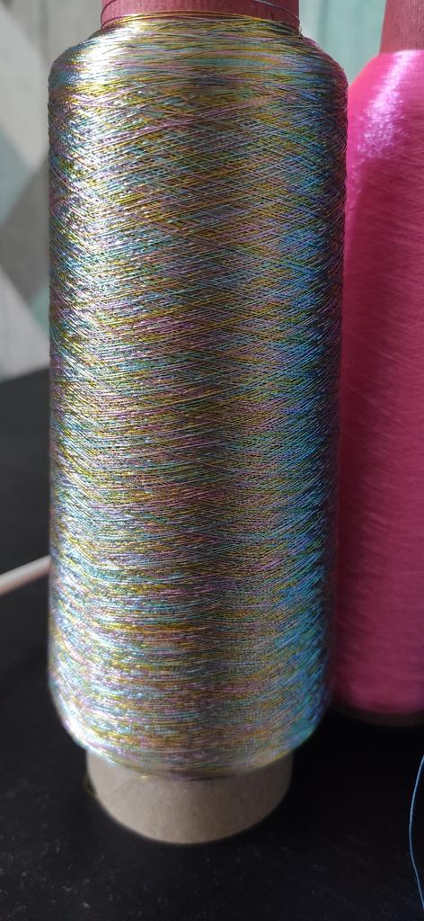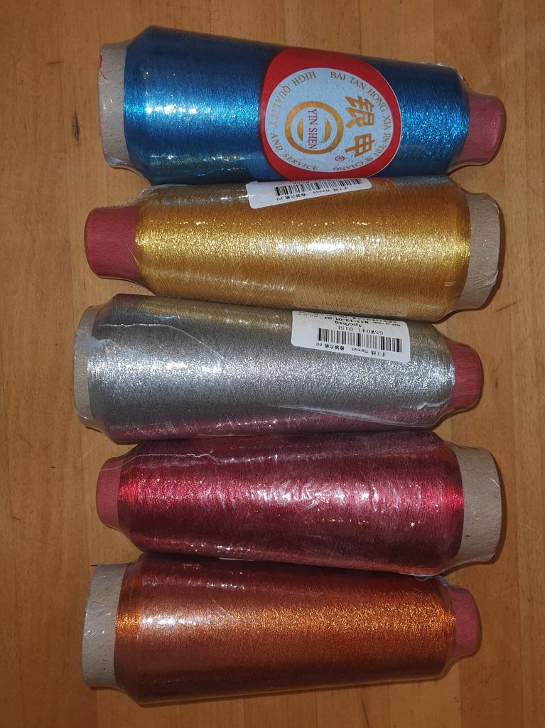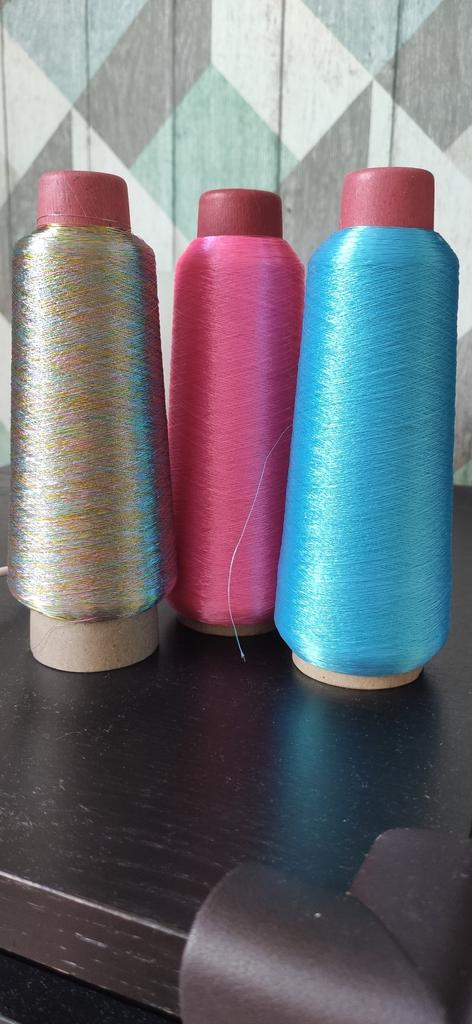 Veldig tynn tråd. En enkelt tråd mister fargen, den ser fin ut bare på spolen.