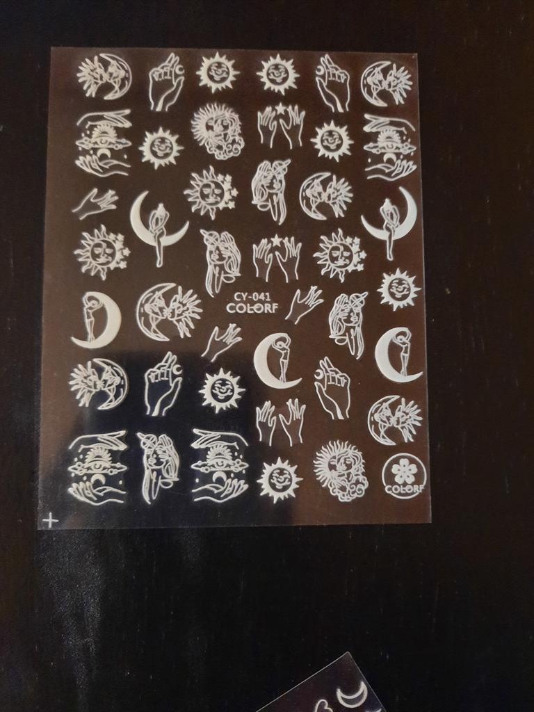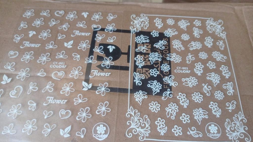 Det ene arket fester seg ikke i det hele tatt, klistremerkene skreller av neglene umiddelbart, det andre arket med sommerfugler og roser fester seg godt på neglene.