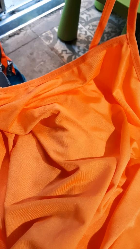 Tynt stoff og det har ikke kryssede stropper som på bildet, men bra for prisen N det er dårlig