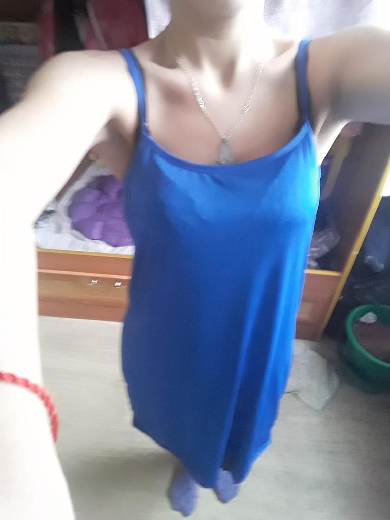 Ser mer ut som en topp som bare går over bunnen, og materialet er også ganske slappt. Ville aldri brukt den som en kjole for å gå ut.
