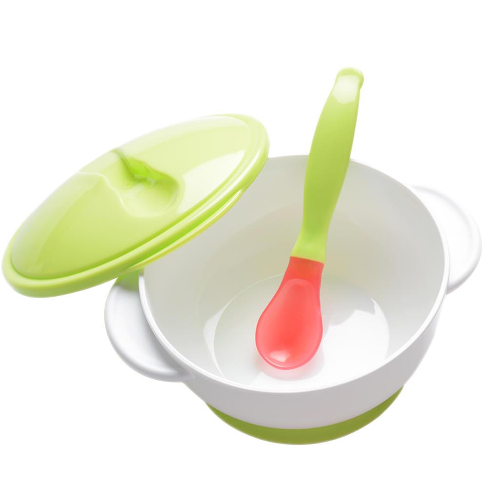 Baby med sklisikkert servise Temperaturfølende skål Matesug