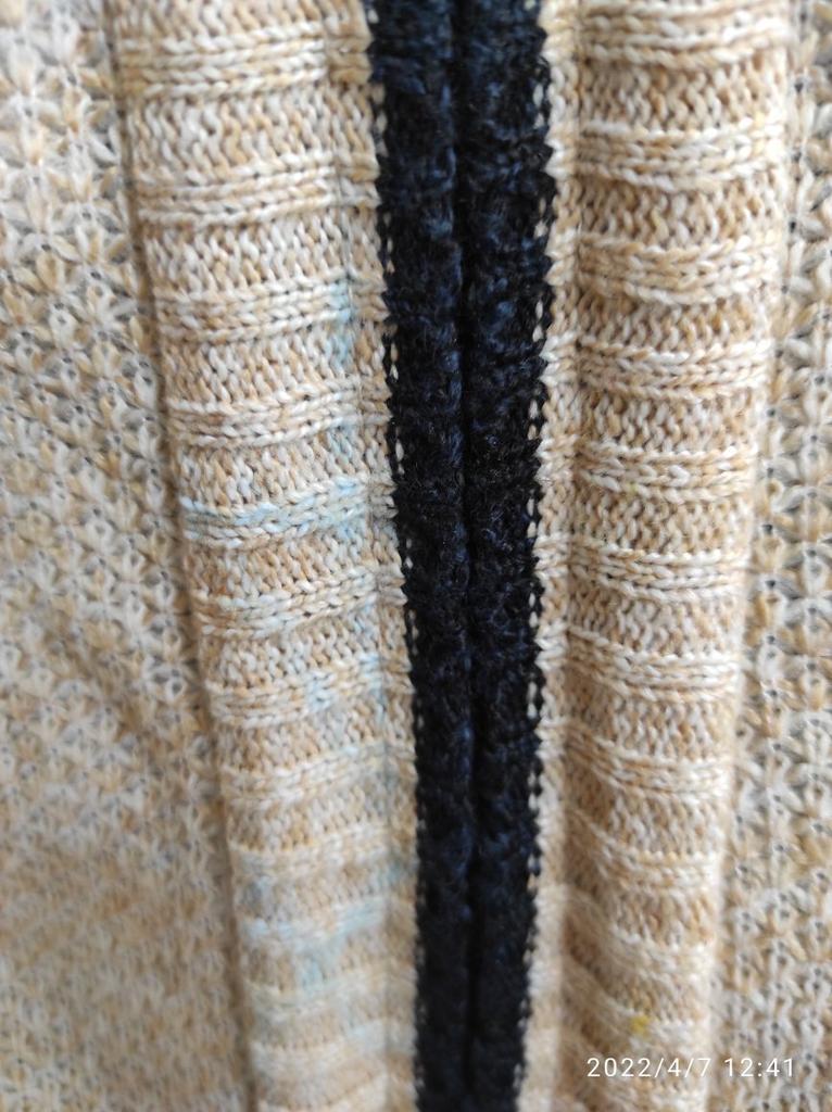 God varm cardigan. Sidelommene er fortsatt sydd sammen, men kan enkelt åpnes. øverste del