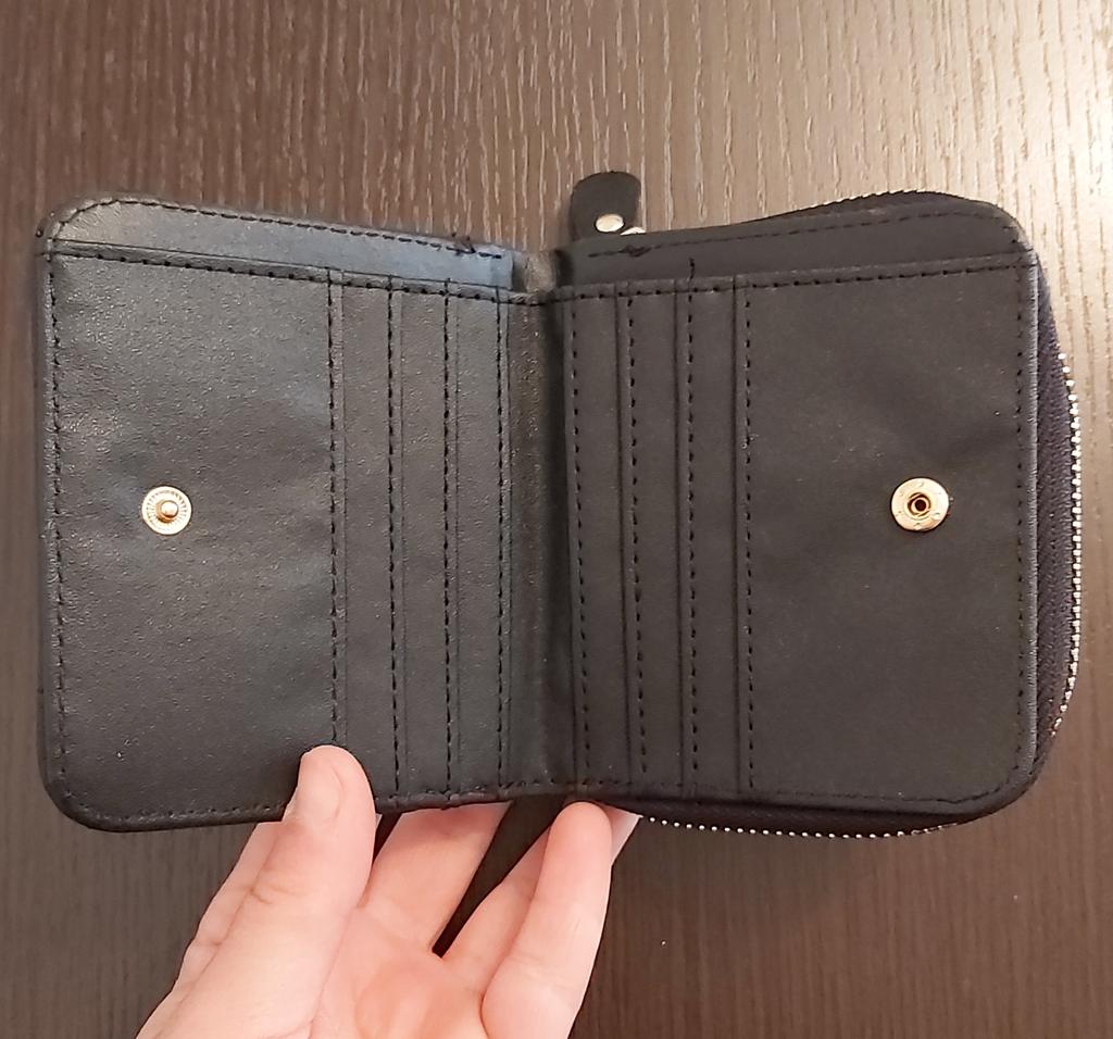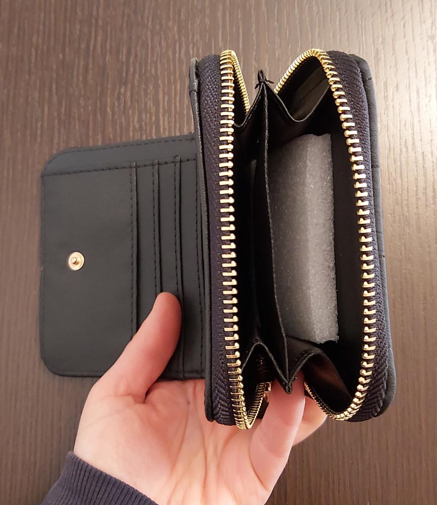 Fin veske. Mye plass til kort. Det var til og med et hårslips inkludert. Tusen takk, jeg ble glad.