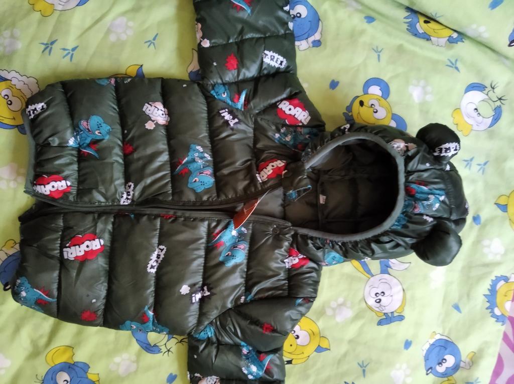 Bestilt 07.09 Mottatt 11.08 Prisen er 292,50 UAH Jakken er av god kvalitet Fargen på selgerens nettside er annerledes Den lille størrelsen for en gutt 80 cm høy er litt stor, men ermene er derfor jeg tenker å laste ned og ha på nå Jeg bestilte størrelsen 100. Den passer til en 1 år gammel gutt. Tråder stikker ganske mye ut. Det som gledet meg er det I midten er fôret godt sydd, så det rives ikke 👍👍👍 Jakken blir liten fordi vi bruker den nå. Skreddersøm av høy kvalitet. Det er beskyttelse for haken. Det er en merkelapp som kan gis i gave. Hetten er støpt og ørene er fylt med syntetisk materiale. Den ser veldig fin ut. Jeg anbefaler selgeren👍👍👍👍
