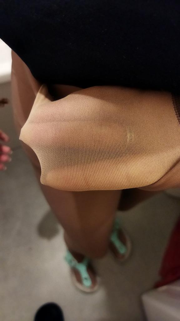 Tights er fine. Men det er en flekk, selv om den er på et slikt sted at den ikke vil være synlig fra under kjolen. Jeg håper de vil ha godt på seg. Jeg legger til senere.