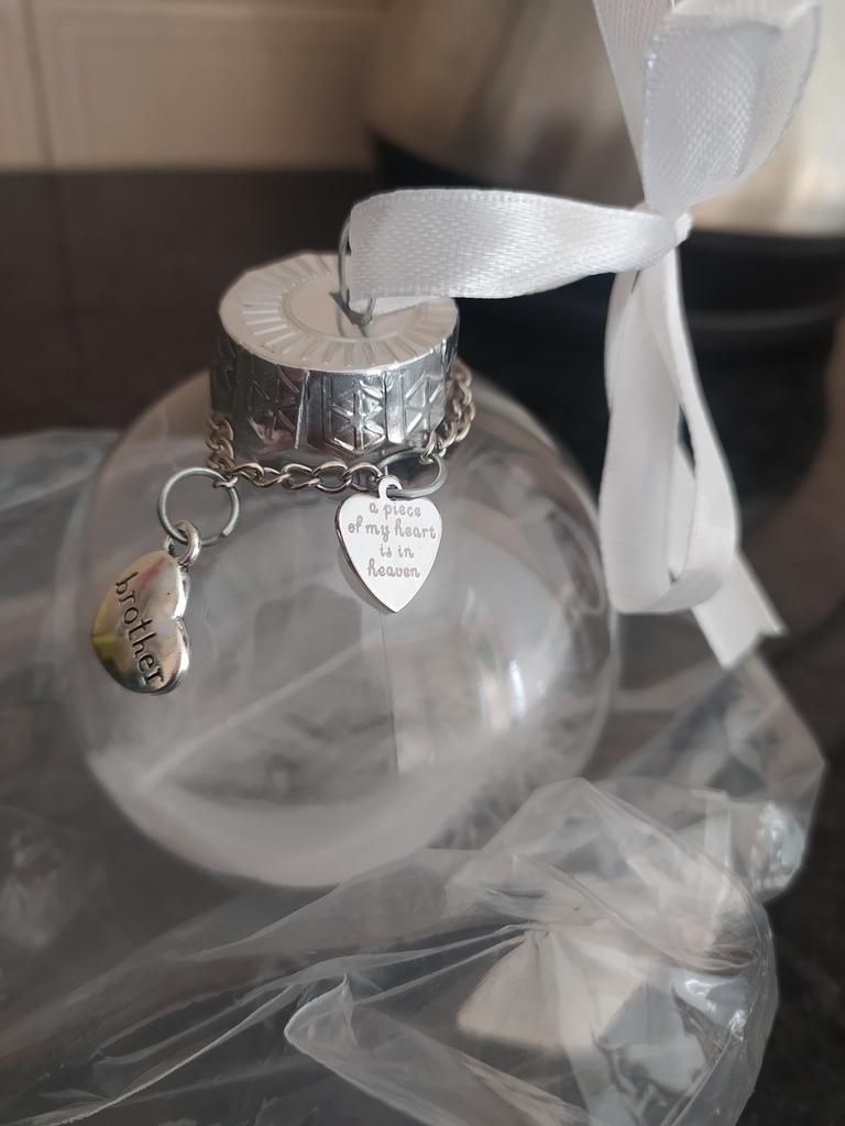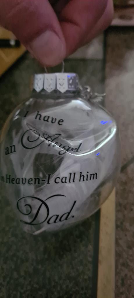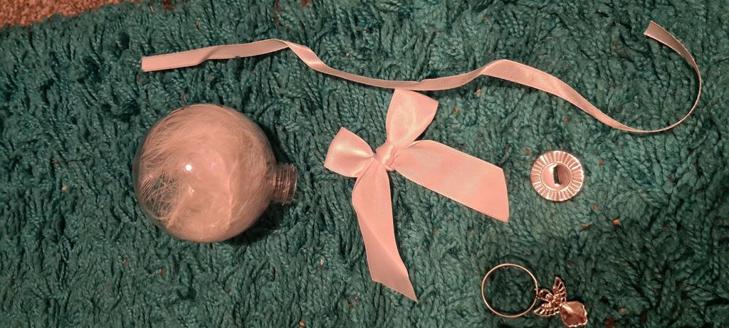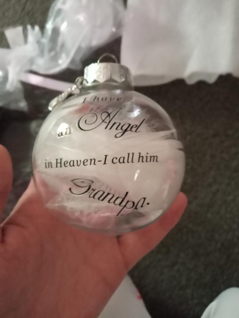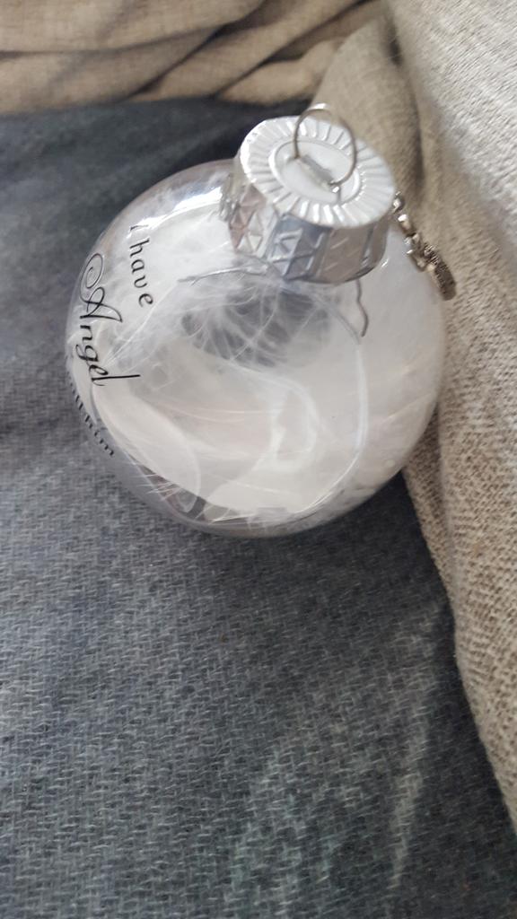 Jeg kjøpte denne julekulen for å minnes barnas bestemor på julaften ❤ Den kom etter ca 3 uker 😊 Fordeler 🌹 🌹 den er veldig søt 🌹 flere varianter 🌹 du kan velge om du vil bruke sløyfen 🌹 Fjærene er en veldig fin detalj 🌹 Teksten er virkelig vakkert skrevet 🌹 det kommer til å passe veldig bra sammen med de andre julekulene Ulemper 🥀 🥀 den kom med en bulk 🥀 du må lime sløyfen på deg selv 🥀 Ikke pakket godt nok fra selger Jeg syntes julekulen var kjempesøt. Det gir oss et minne å se på og en følelse av at de fortsatt er med julaften 🥰 Jeg beklager at julekulen ble bøyd da den kom men jeg har rettet den opp noe ved å åpne kulen introduserer også noe som kan bule den ut igjen 😊 Jeg kunne se andre kjøpere har opplevd det samme med ballene sine, noe som er veldig synd når ballen er så fin. Jeg vil gjerne anbefale det til andre med det, men at du må tenke på at det ikke er sikkert du blir kvitt en bulk fra frakt, dessverre 😊
