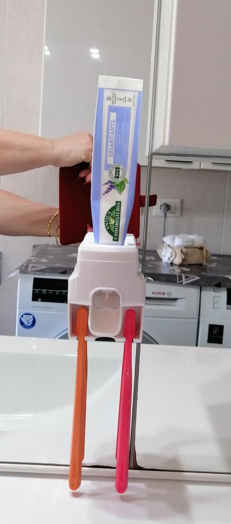 Perfekt løsning for for mange tannbørster. Fungerer feilfritt. God mengde tannkrem som kommer ut.