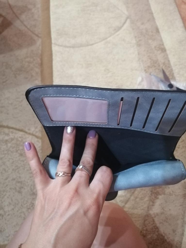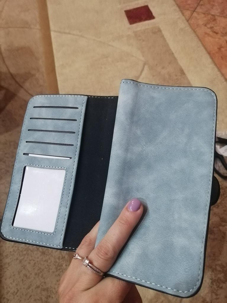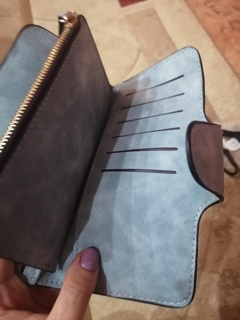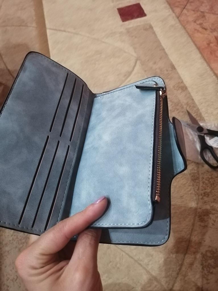 Jeg fikk lommeboken min, jeg har hatt lyst på en lenge, jeg har alltid hatt slanter liggende i lommene. Kom i god stand, levering ca 2 uker veldig raskt, lagt i postkassen. Så i prinsippet er det veldig vakkert, behagelig å ta på, en så myk semsket skinnoverflate (Men hvis det smører seg, vil jeg ikke tørke det av 🤗) Festes med en knapp, og lommen for småting har glidelås, jeg liker selvfølgelig ikke kvaliteten på glidelåsen, vel, de virker ikke pålitelige for meg. Trådene stikker litt ut i nærheten av lommen, men jeg setter fyr på dem litt og det går fint.Det er mange rom for penger og kort, noe som er praktisk. Jeg likte det🤗❤️