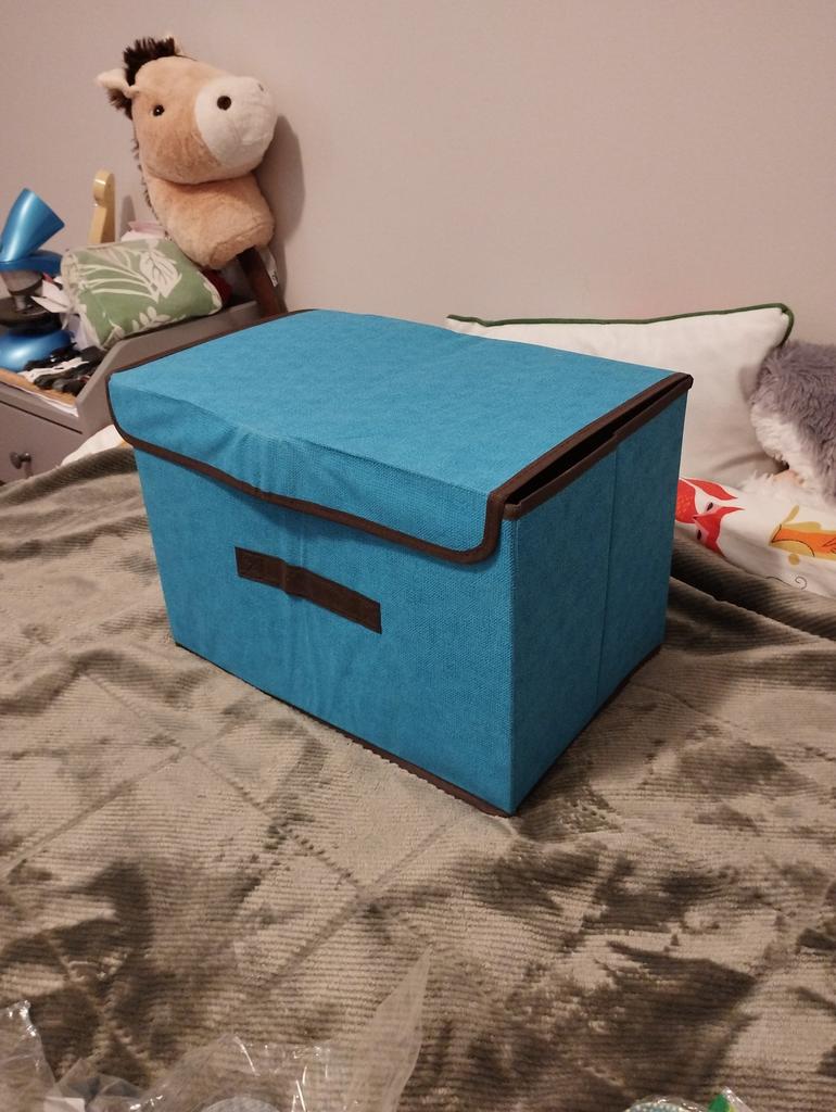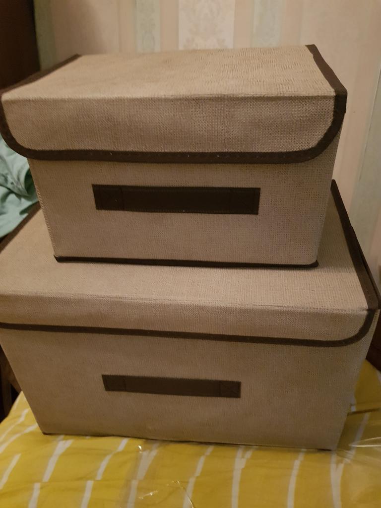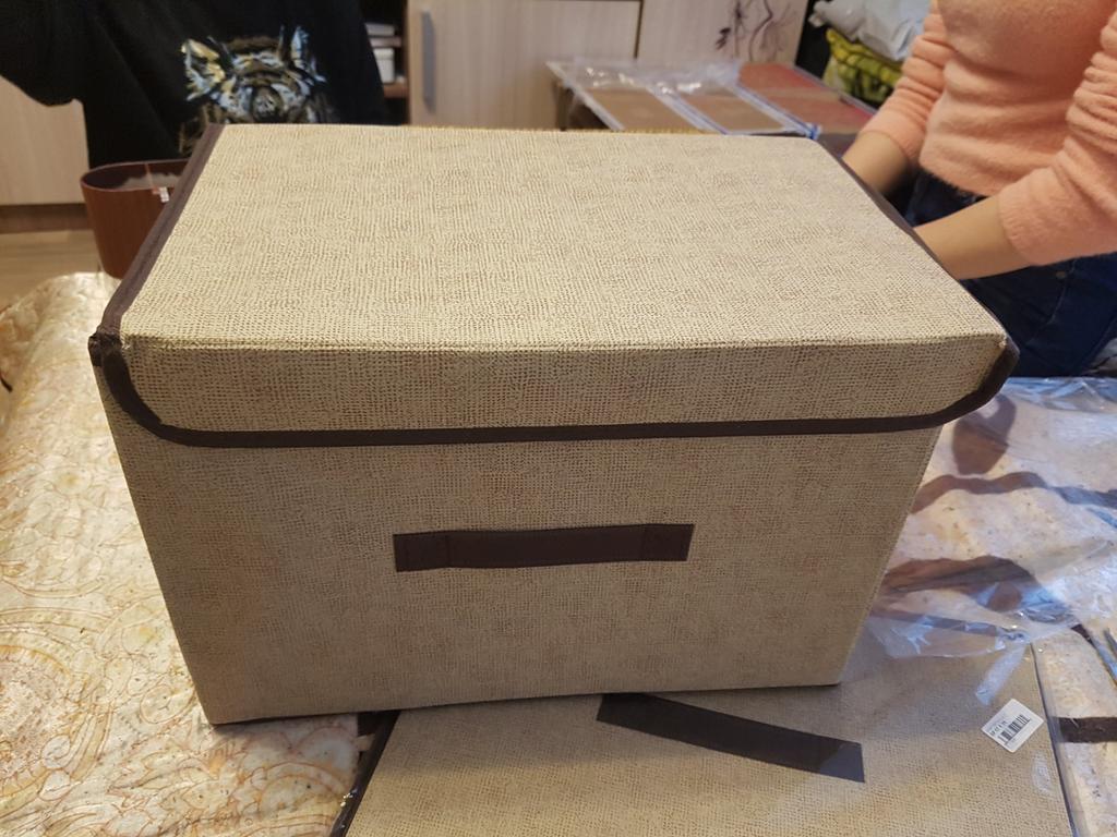 Stor stoffboks. Praktisk for oppbevaring av forskjellige ting. Jeg kjøper den ikke for første gang.