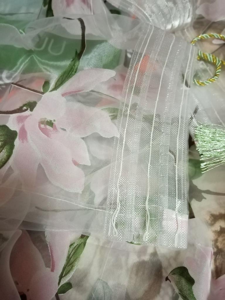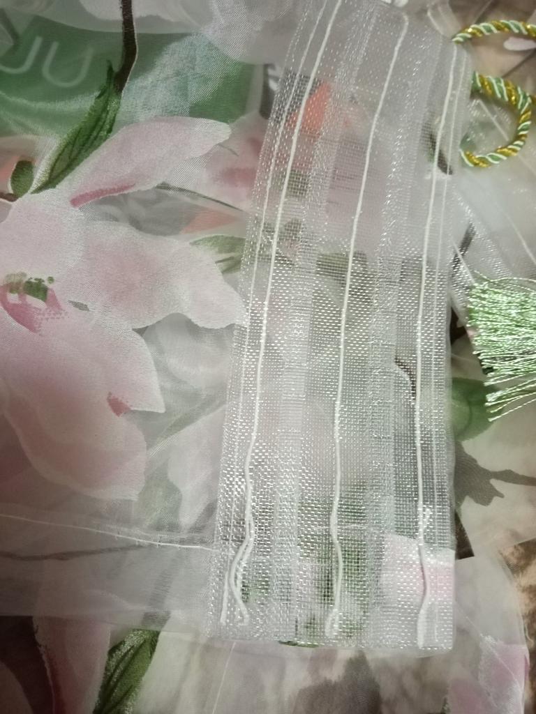 Gardiner er kule, uvanlig delikate. Utmerket utførelse, tråder stikker ikke ut noe sted. Det er hemper på toppen for oppheng, pluss en fin dekorativ snøring. Jeg anbefaler. Når du bestiller, pass på å ta hensyn til lengden på gardinene!