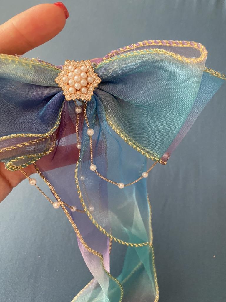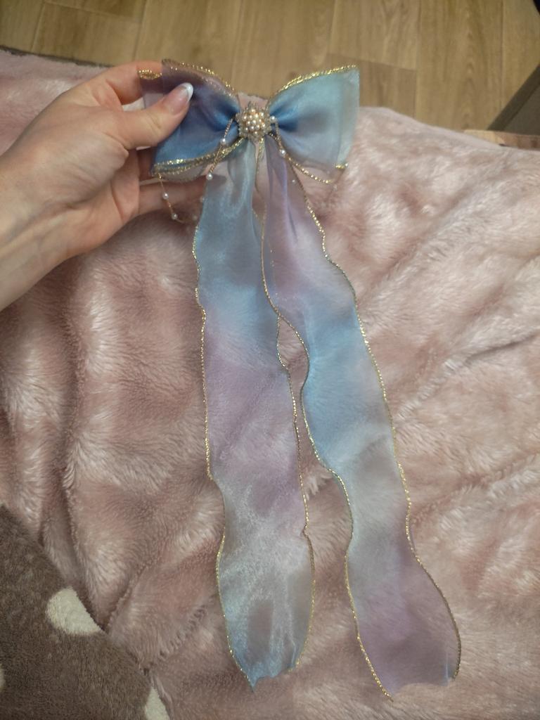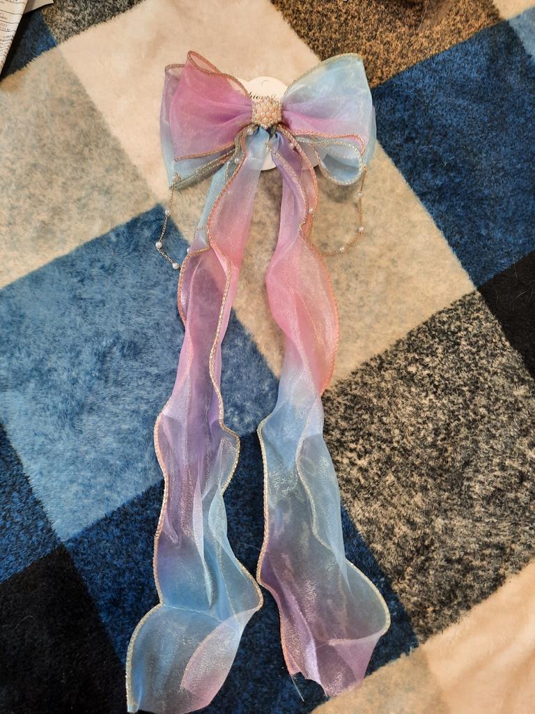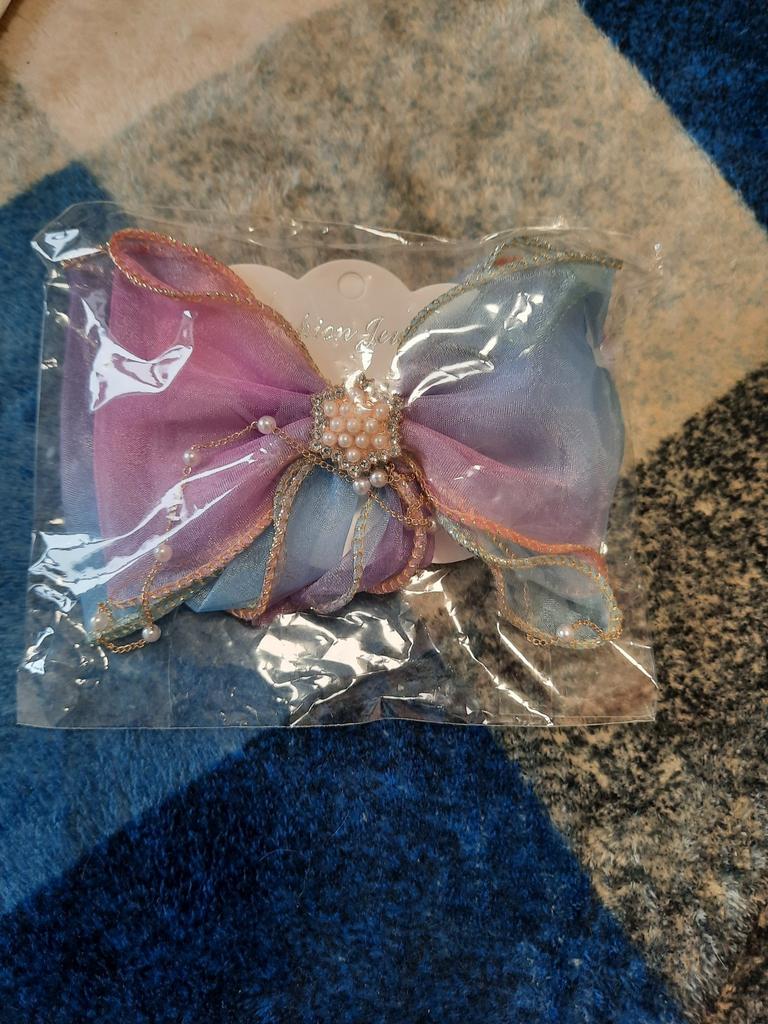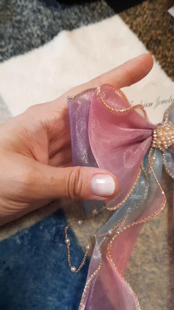 Jeg håper når jeg stryker den, blir den litt fyldigere, jeg setter sløyfen på datteren min, rett etter utpakking. Vel, kantene, jeg forstår ikke hva det er, det er tydelig at de er uferdige 🤷🏼♀️