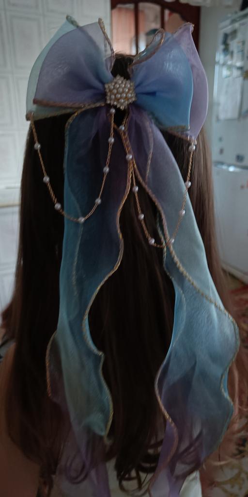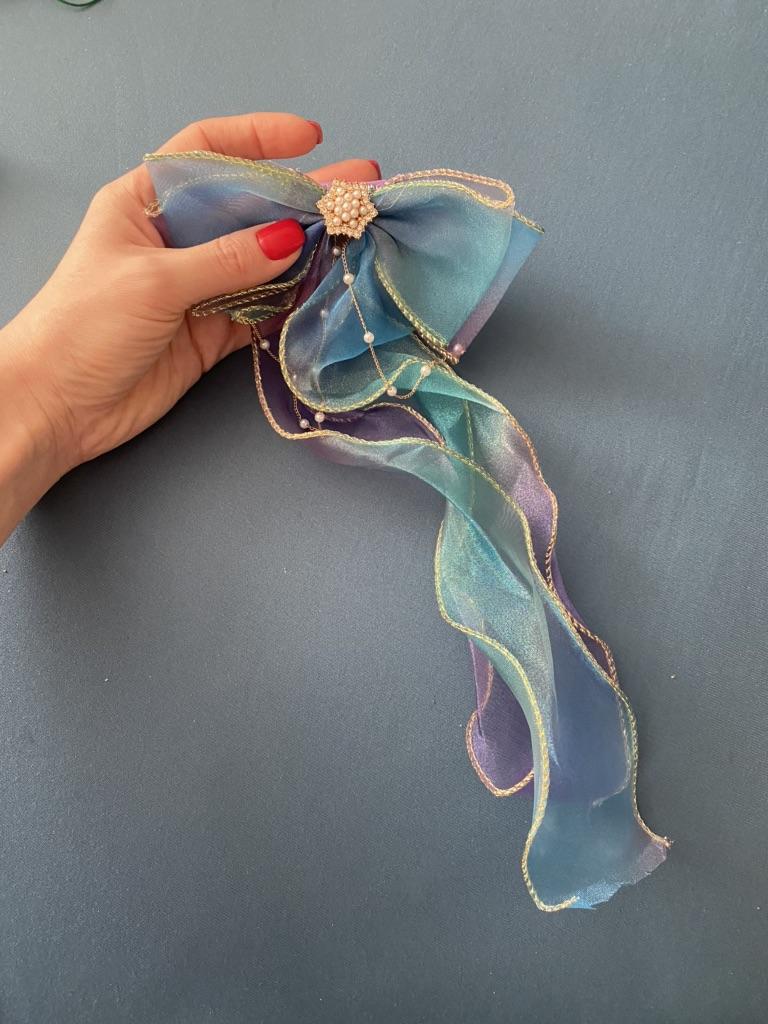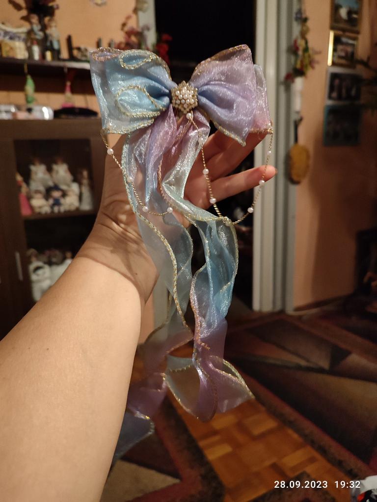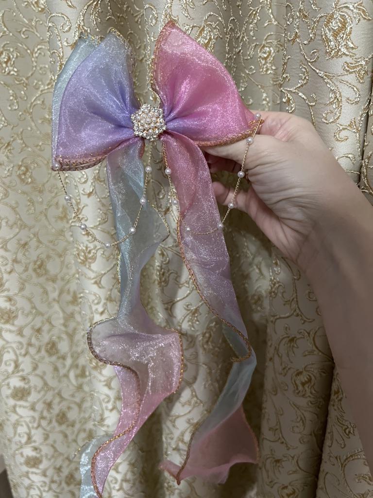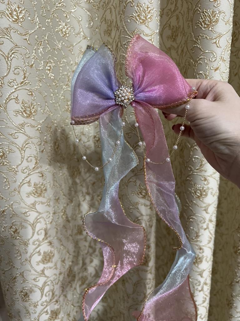 Jeg håper når jeg stryker den, blir den litt fyldigere, jeg setter sløyfen på datteren min, rett etter utpakking. Vel, kantene, jeg forstår ikke hva det er, det er tydelig at de er uferdige 🤷🏼♀️