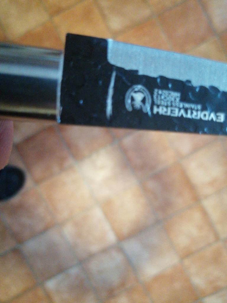 Det ble påført vanlig maling på kniven, ripen bekrefter dette!!!!