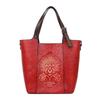 Johnature Retro Luksus Håndvesker Kvinner Bøtteveske Vintage Stor Kapasitet Floral Kuskinn Håndlagde Pregede skuldervesker