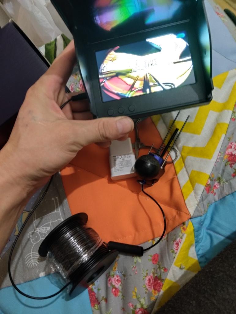 To fiskeflyvninger er normalt, dybden på 4,6m kan sees perfekt i en annen modus, den er ikke så synlig, jeg limte ledningen ved inngangen med en tetningsmasse og satte på termorør