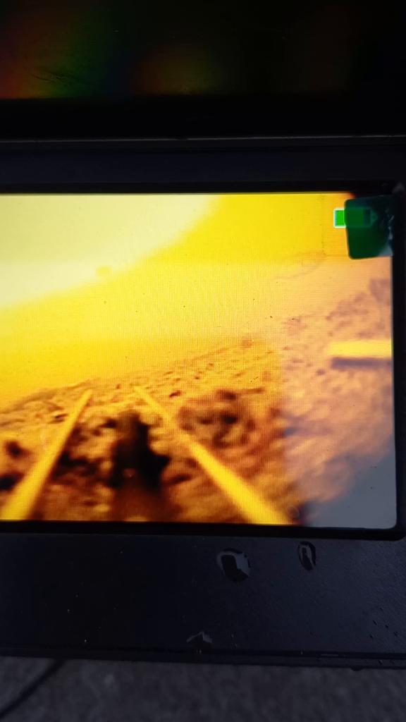 Skjermen er ikke berørt. Det kom fukt inn i kameraet på den andre fisketuren, linsen dugget til, ingenting er synlig.