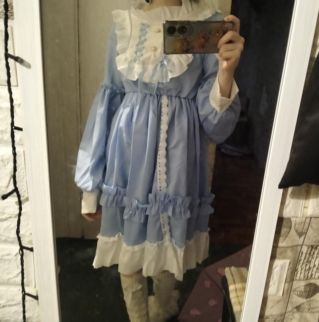 Japansk gotisk Lolita-kjole Kvinner Kawaii Sløyfe Bjørn Blonder Blå kjole Langermet prinsessekjole Halloween kostymegave til jenter