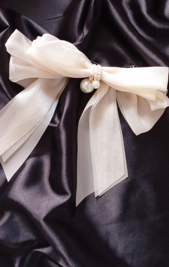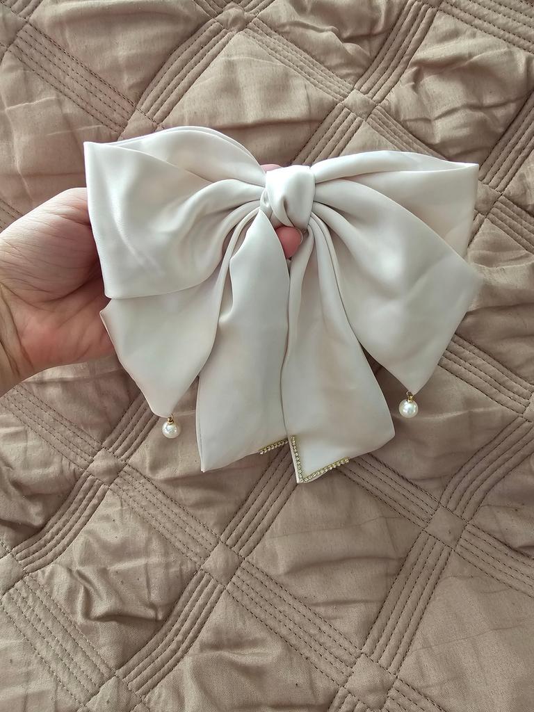Sløyfen er perfekt, med perlene hengende ser den veldig bra og dyr ut! Jeg er veldig fornøyd!