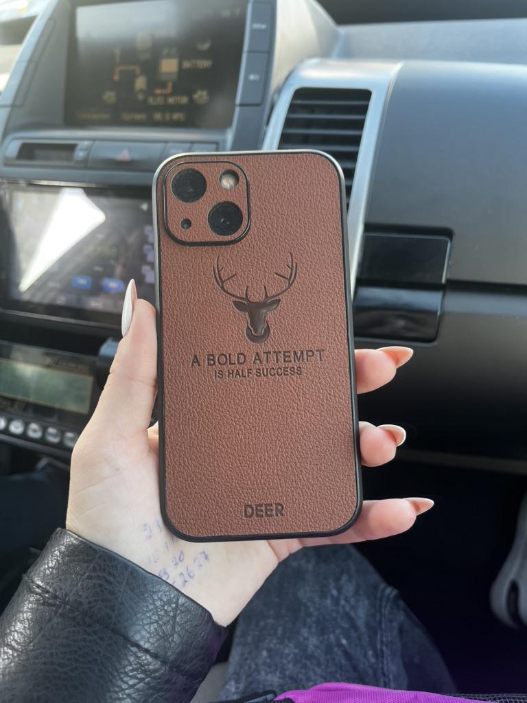 Luksus Deer Leather Phone Case For iPhone 15 14 13 12 11Pro Max XS XR XS Max 7 8Plus Lens Glass Bumper Støtsikkert silikondeksel