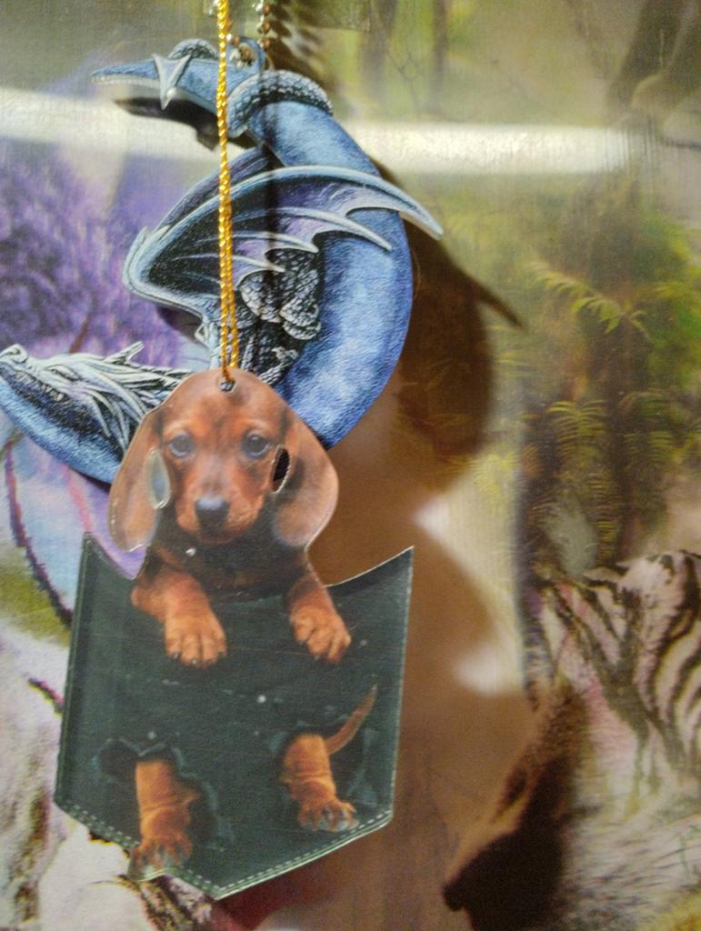 Alt er bra. Hunden er kul, men det er ikke et kosedyr. Den er skåret ut i plast og har et påført grafisk design.