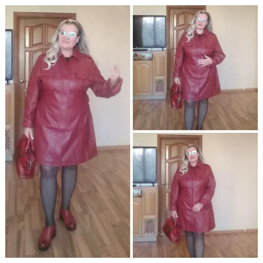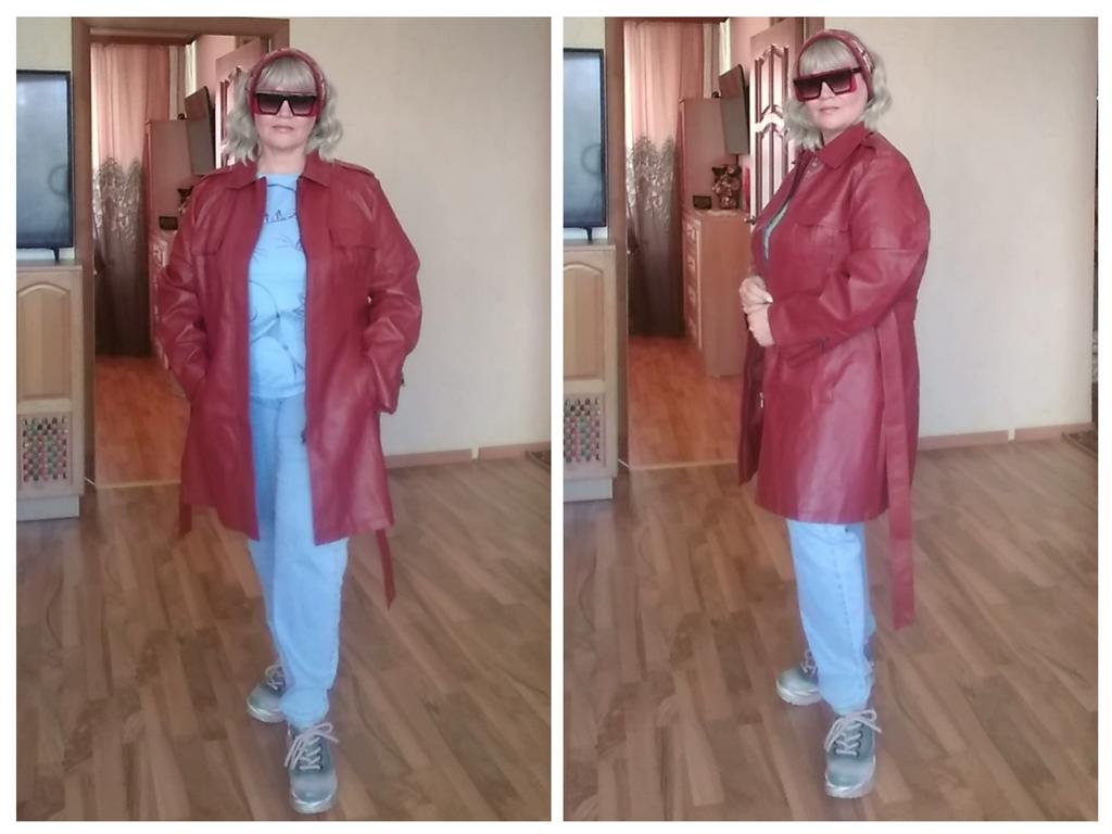 Størrelse L, skulder: 43,5 cm, byste: 108cm, erme: 63 cm, lengde: 91cm