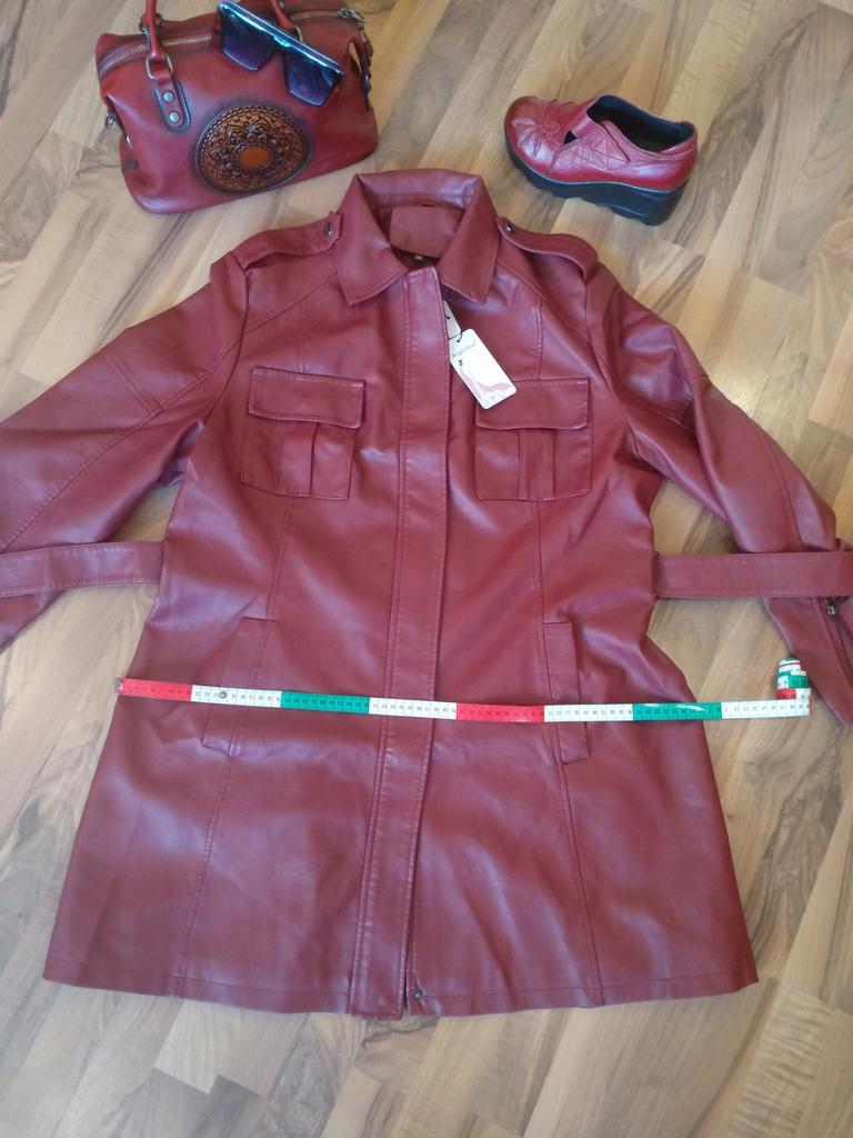 Størrelse 2XL, skulder: 47,5 cm, byste: 122 cm, erme: 65 cm, lengde: 93cm