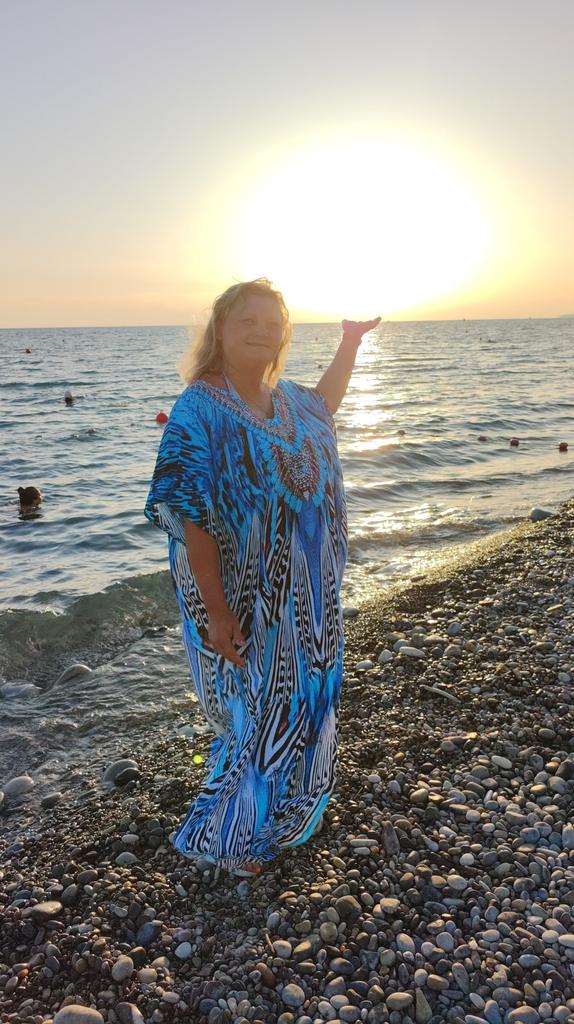 Behagelig strandkjole. Fargerik, løstsittende. Hvordan den er å ha på i varmt vær har jeg ikke hatt mulighet til å vurdere ennå.