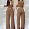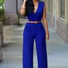 Vår Sommer Jumpsuit for kvinner Sex Mote Uformell V-hals med høy midje Bukser med brede ben Beltebukser
