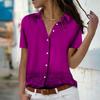 2023 Summer New Fashion kvinners blå prikker trykt kortermet V-hals Uformell skjorte med knapper
