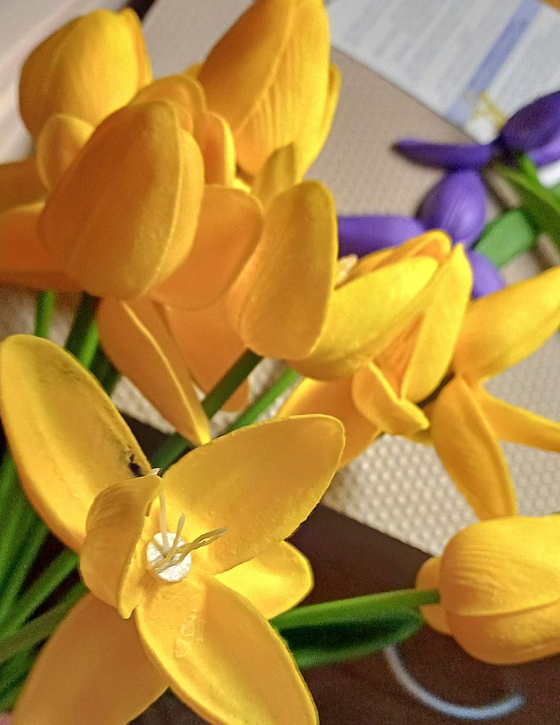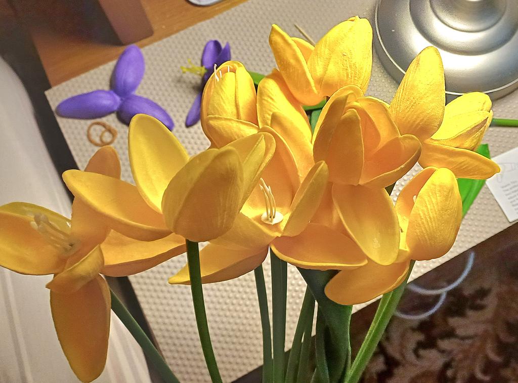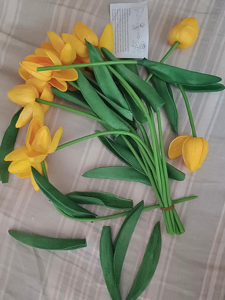 Kvalitet!!😱ALT separat. Blader, pinner, kronblader. Sett sammen SELV!😦Disse blomstene kan neppe kalles tulipaner. Prøvde å gjenopprette formen deres med damp og deretter en varm hårføner. Resultat 0. På bildet er ALT klart.NEEEEEEI!!!