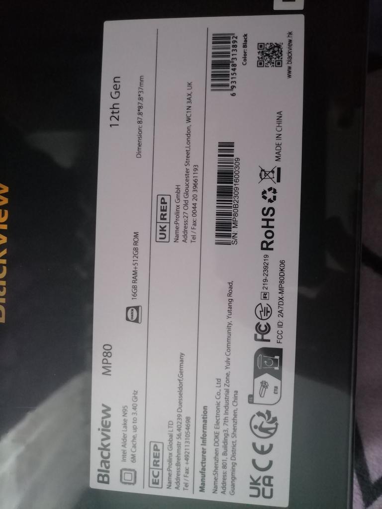 Blackview MP80 Windows 11 Pro Intel 12th Gen N95 Mini PC DDR4 16GB 512GB SSD stasjonær spilldatamaskin