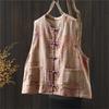 Johnature Kvinner Vintage bomull Linvester Kåper Patchwork Farge Lommer Knapp Pluss bomullsklær Høst Damevester