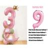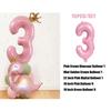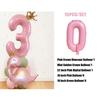 Grønn rosa dinosaurballongtårn med 32-tommers tallballong for jentedinosaurer DIY bursdagsfestdekorasjoner