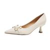 Vår Høst Kvinner Spissetå Hvit Metallspenne Høye hæler Stiletto Elegant Bankett Dress Up Sko 34-39 Str.