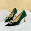 Bankett for kvinner med høye hæler semsket skinnoverflate med grunt munn, spiss metall perle rhinestone spenne enkeltsko
