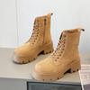 High Heel 6.5cm Martin Boots Women's New Thick Sole Short Boots British Reverse Fleece Leather Fashion Versatile Motorcycle Boots