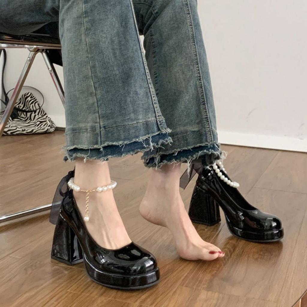 Spring And Autumn New French Vintage Mary Shoes Small Leather Shoes Thick Heels Shallow Mouth Single Shoes