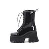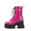 Korte Goth-støvler for kvinner Høye, kraftige hæler Snøring Rund tå Plattform Gothic Sko Rose Rød