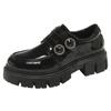 fashion Crystal Buckle Chunky Heels Pumps Women Black Patent Leather Platform Loafers Woman Thick Bottom Non-Slip Gothic Shoes Ladies