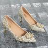 Mote Kvinner Krystallperlebesatte Sko Vår Høyhælte Chunky Femme Mote Luksus Kjolesko Elegante Lave Sko Zapatos Pumps