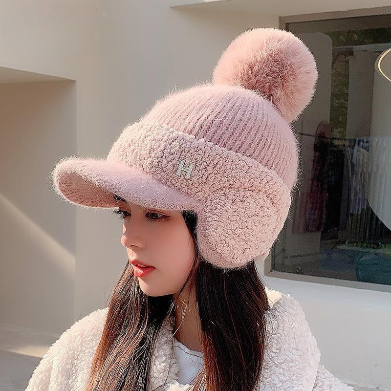 Lue dame høst og vinter ørebeskyttelse varm baseball dusk lue dame fortykket plysj andetunge strikket ullue vinter