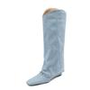 Punk Designer Western Boots Trouser Pants Boots Riveted Wedge Heels Cowboy Knee High Boots Plus Size Leather Women's Shoes 34-42