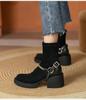 Women's Square Heel Ankle Boots Autumn Winter Chain Black Fashion Long Knee-high Boots Women Shoes Outdoor Slip-on Women's Boots