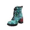 Fashion Printing Women's Ankle Boots Autumn Winter New Thick High Heels Platform Round Toe Party Shoes Green Yellow Size 44