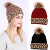 Fashion Leopard Print Curled Edge Wool Ball Knitted Hat for Women's Outdoor Warmth Thickened Autumn Winter Men's Woolen Hat
