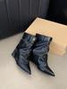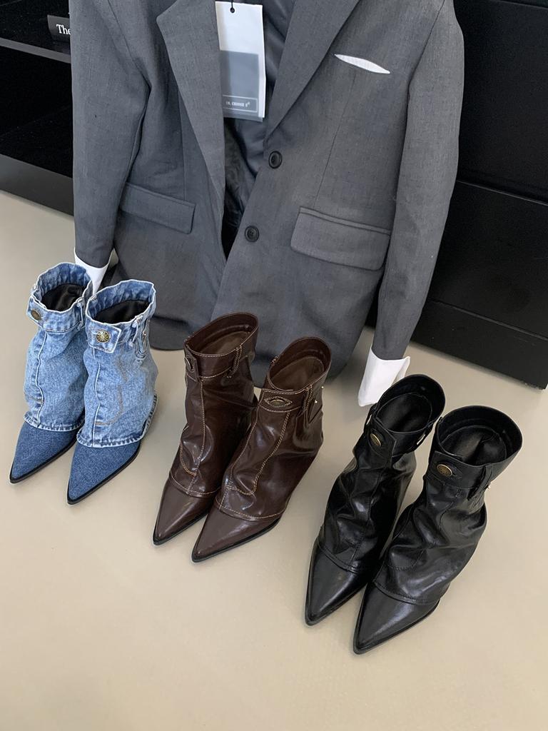 Mote Denim Dame Midtkalvstøvler Mote Spiss Tå Svart Blå Knappedesign Tynne Middels Hæler Sexy Chelsea Støvler Dame Størrelse 35-39 Pumps