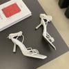 fashion Open Toe Women Sandals Narrow Band Summer Outside Dress Shoes Thin High Heels Black White Purple Cross Ankle Strap Sandals 35-39