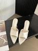 fashion Silk Women Slides Slippers Pointed Open Toe Summer Outside Thick High Heels Black White Rose