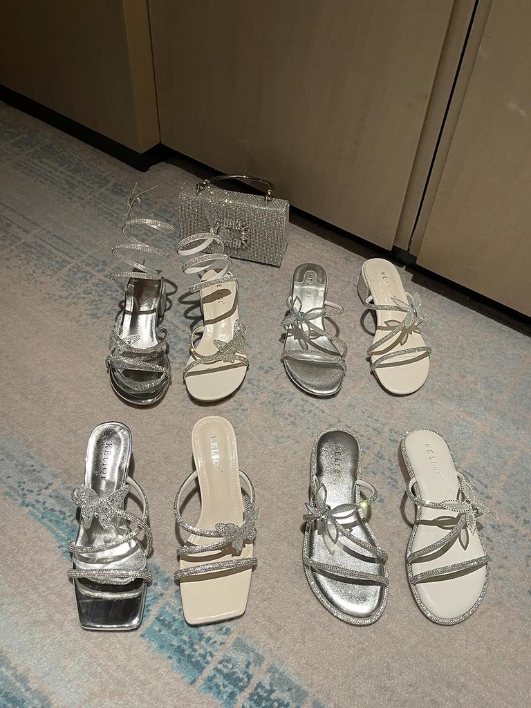 fashion Fashion Women Slides Slippers Open Toe Summer Outside Thin High Heels Casual Party Pumps Ladies Silver White Dress Shoes Woman